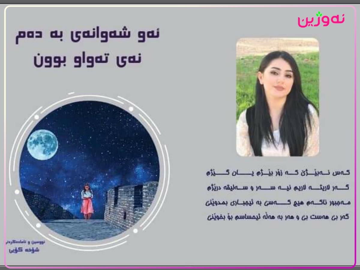 خانمە شاعیری لاو شۆخ کامەران، یەکەم کتێبی تایبەت بە بەرهەمە شعریەکانی بڵاوکردەوە بەناوی' ئەو شەوانەی بە دەم نەی تەواو بون'