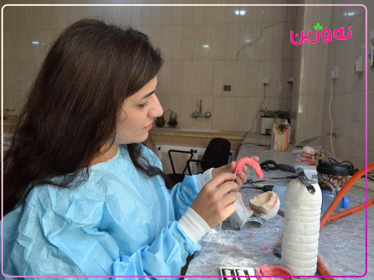 کچێکی دانیشتوی شاری دهۆک لە سەنتەری تەندروسی ددانی شارەکە رۆژانە کاتەکانی لە تاقیگەی دروستکردنی ددان بەسەر دەبات بۆ ئەوەی بتوانیت ددان بۆ چارەخوازەکانی دروست بکات.
