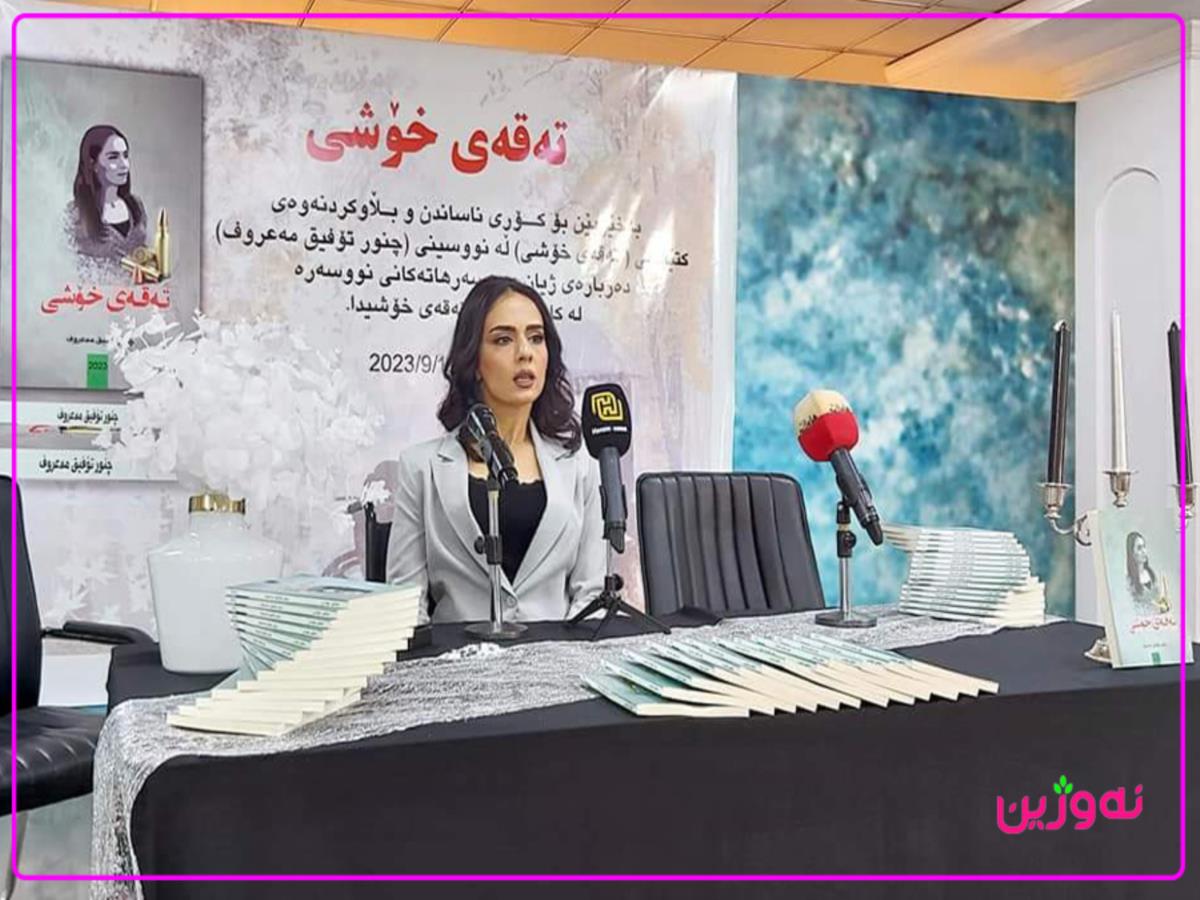 چنور تۆفیق، ٤٠ ساڵ، دانیشتوی شاری سلێمانیە و پیشەی مامۆستایە، لە مەراسیمێک دا لە شاری سلێمانی ناساندنی بۆ کتێبەکەی کرد کە بە ناونیشانی: (تەقەی خۆشی)ـەوەیە.