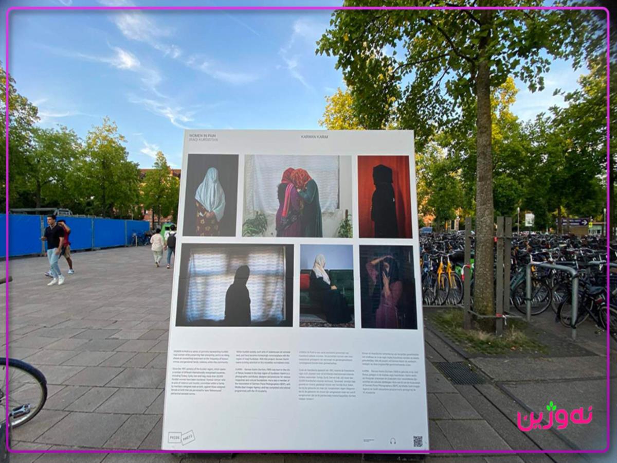 بیرۆکە و فۆتۆستۆریەکە هی فۆتۆگرافەری کورد: کاروان کەریم بو، فۆتۆکان لەپاڵ وێنە و فۆتۆستۆری وڵاتانی دیکەی جیهان کە تێیاندا توندوتیژی رەگەزیی و دژی ژنان تێیاندا بەرزە، نمایشکرابو.