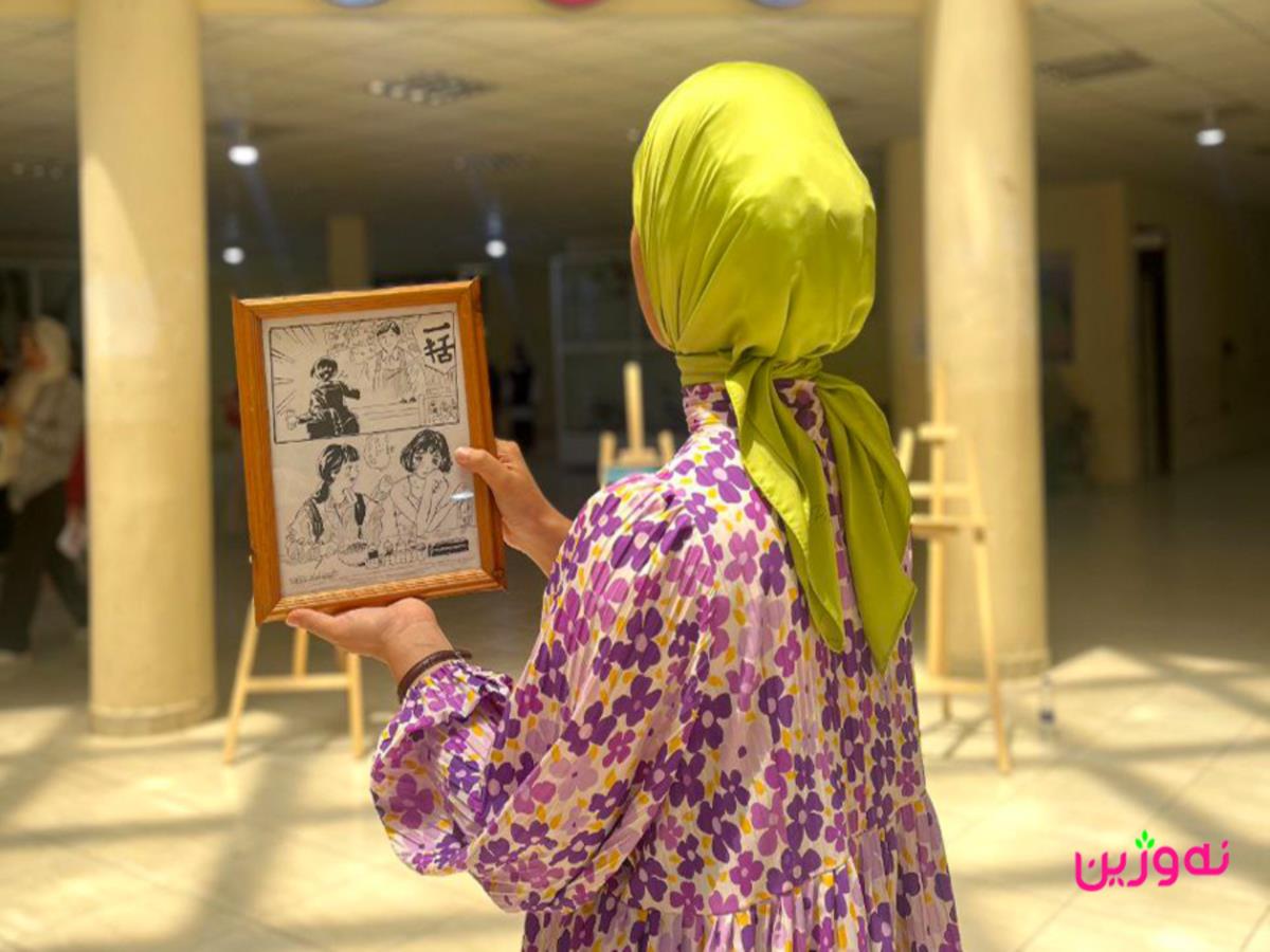 هەڵاڵە مەحمود، کچە شێوەکار و فێرخوازی بەشی باخچەی مناڵانی زانکۆی گەرمیان، لەمیانی پێشەنگایەک دا لەنێو زانکۆکەی نمایشی (٢٦) لە تابلۆکانی کرد کە سەرجەمیان بەشێوەی ئەنیمین.