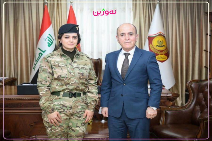 شۆرش ئیسماعیل، وەزیری پێشمەرگە لەگەڵ خانمێکی پێشمەرگە: وێنە: پێگەی وەزارەتی پێشمەرگە