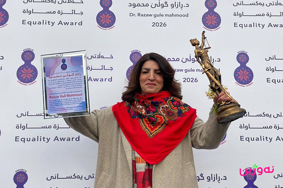 خەڵاتی یەکسانی بۆ ساڵی ٢٠٢٦ بەخشرایە پارێزەر و چالاکوان؛ د. رازاو گوڵێ، وەک رێزلێنانێک بۆ کار و چالاکییە بەردەوامەکانی لە بواری مافەکانی ژنان و یەکسانیی جێندەری لە هەرێمی کوردستان.
