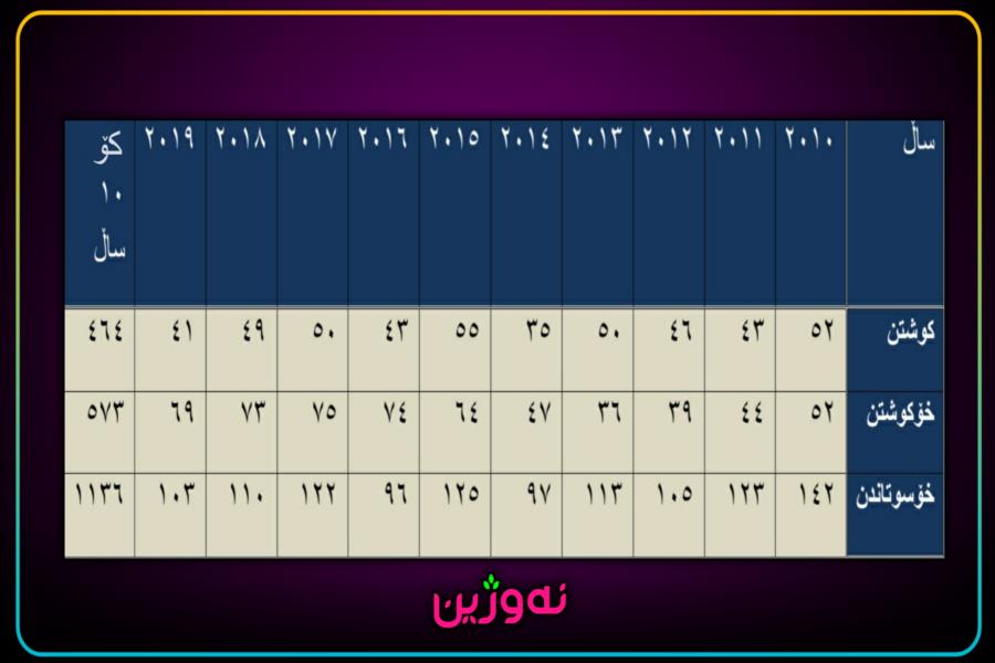 خشتەی ئامارەکانی تاوان دژ بەژنان لە ماوەی ١٠ ساڵدا لە هەرێمی کوردستان